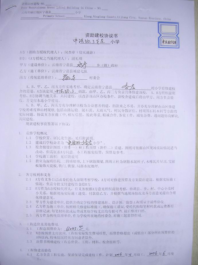 一、《资助建校协议书》及附件《图纸》和《工程预算单 》
