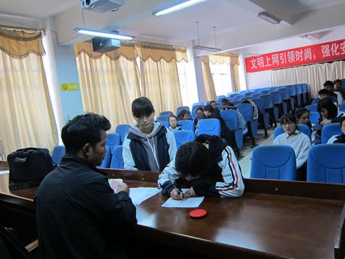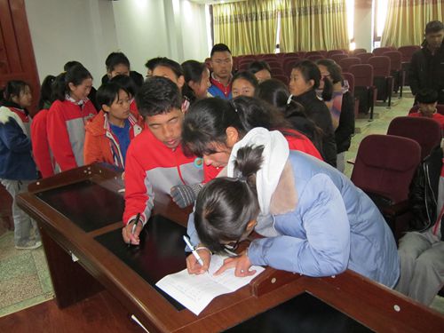 宁蒗民中,一起发放资助款,学生领款照片