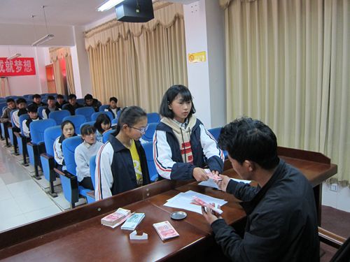宁蒗一中,一起发放资助款,学生领款照片