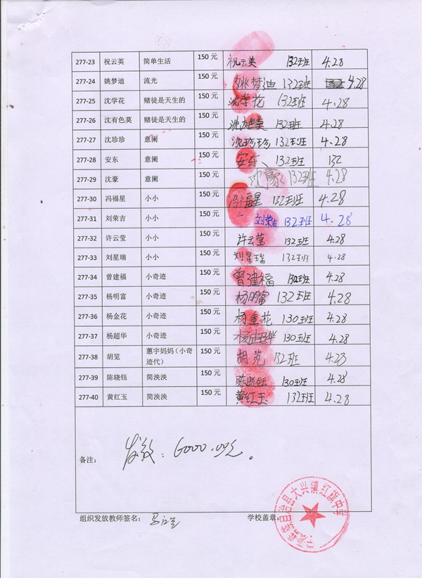 第277批受助学生名单(红旗中学初一40名,nada网友)