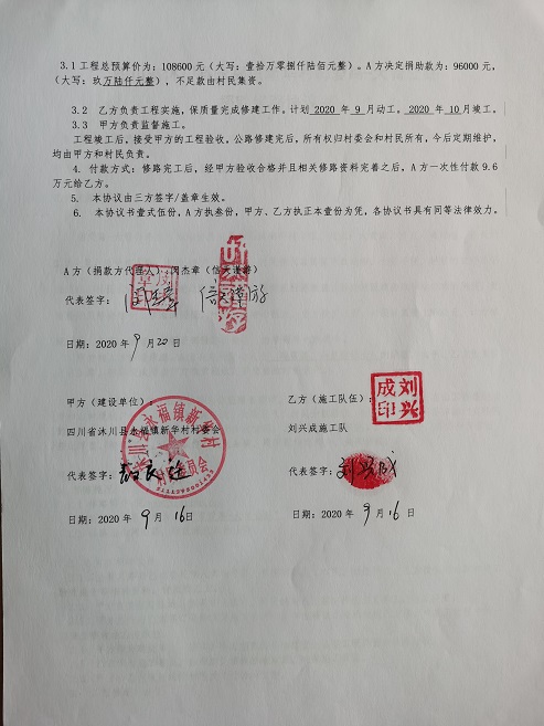 捐助修路协议书