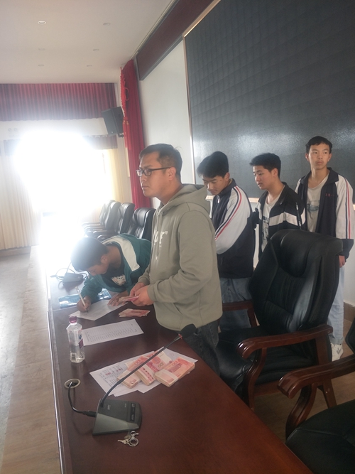 宁蒗一中,一起发放资助款,学生领款照片