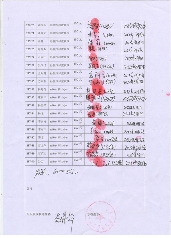 第287批宁利中学(2022年3月到2022年7月)受助学生签收单