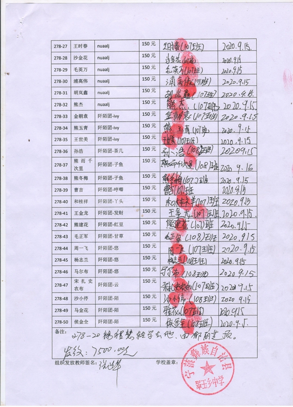 » 第278批受助学生名单(翠玉中学初一50名,团捐)