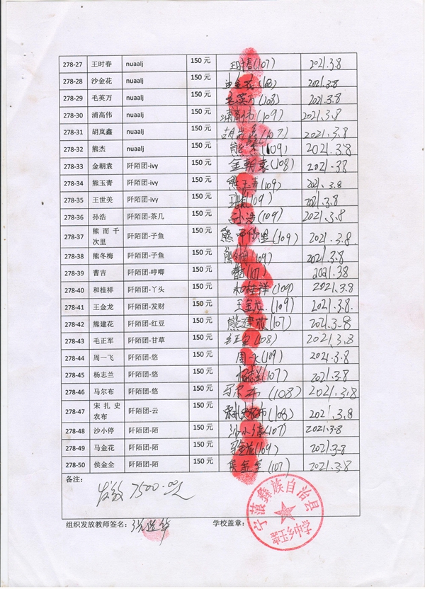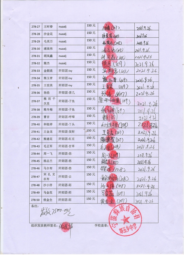 第278批翠玉中学(2021年3月-2021年8月)受助学生签字确认单