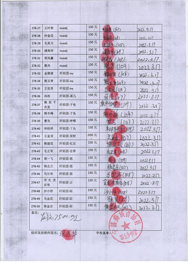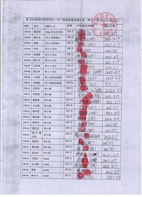 第278批翠玉中学(2022年3月-2022年7月)受助学生签字确认单