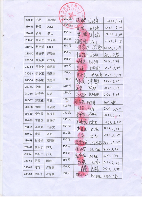 第280批战河中学(2022年3月-2022年7月)受助学生签字确认单
