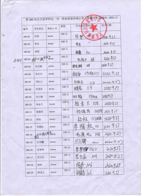 图片附件: 第285信天助学资助款签收确认单1(蒗蕖中学).jpg (2020-10-18 22:06, 386.06 K)
