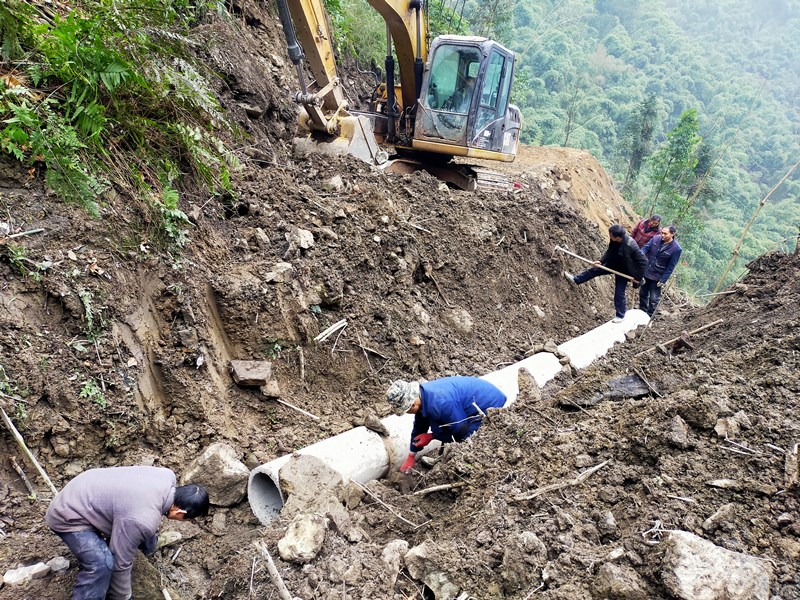 铺设涵管。
