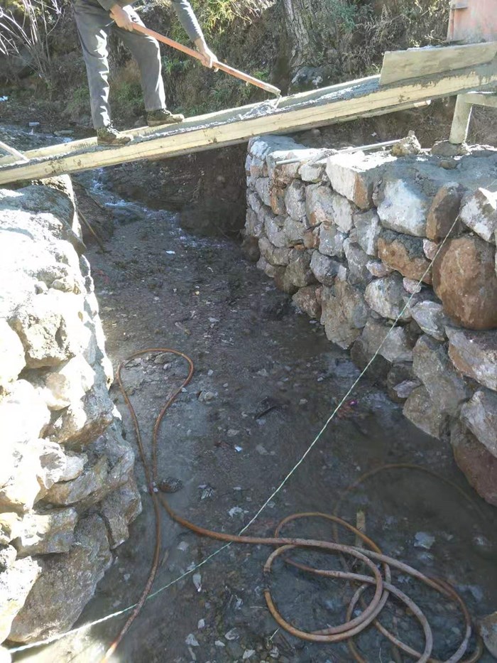 修好的水泥路,要在中间打开豁口,修桥。