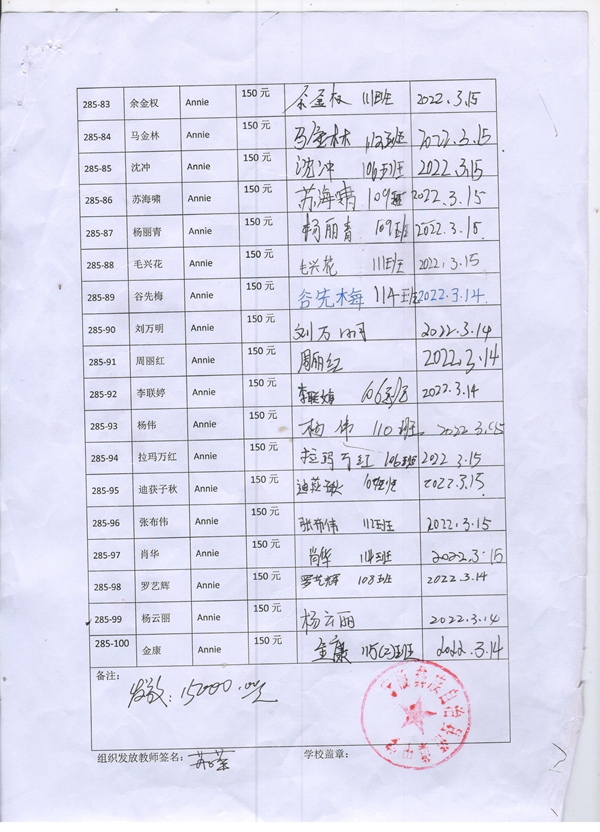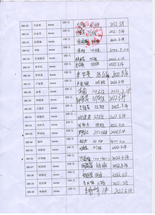 第285批蒗蕖中学(2022年3月-2022年7月)受助学生签字确认单
