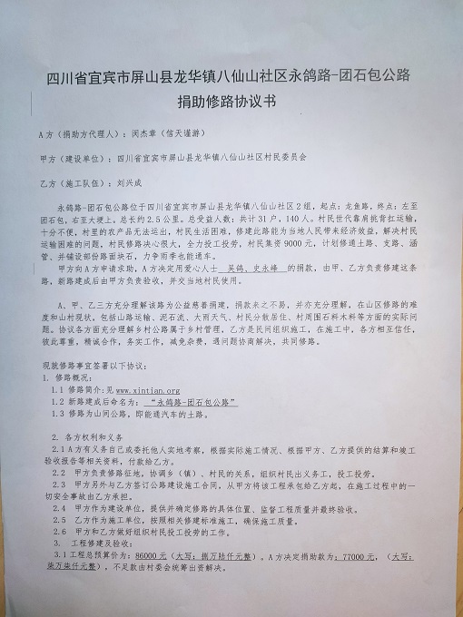 捐助修路协议书