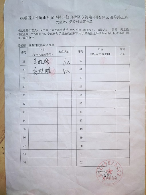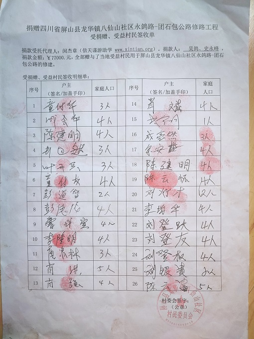 受益村民签字单