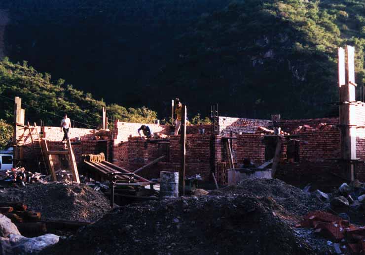 10月1日,会同深圳驴友敬一凡、草草行(从西藏漫游此地)一起去凹里落小学,当时地基已做好,下圈梁正在保养,钢筋立柱已竖了起来,工人正在汗流浃背托运砖头,晚上参加傈僳族国庆篝火晚会。
