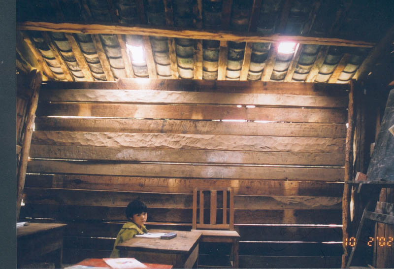 六、 学校结构:石头地基、上下钢筋圈梁、砖墙、木椽瓦片房顶、宝丽板装饰天花板、铁门、铁窗、水泥地坪。