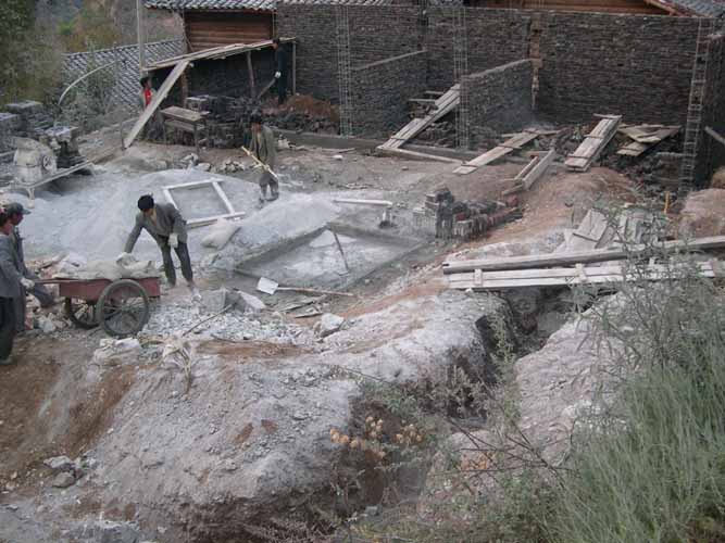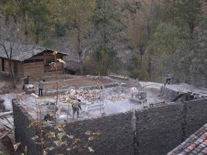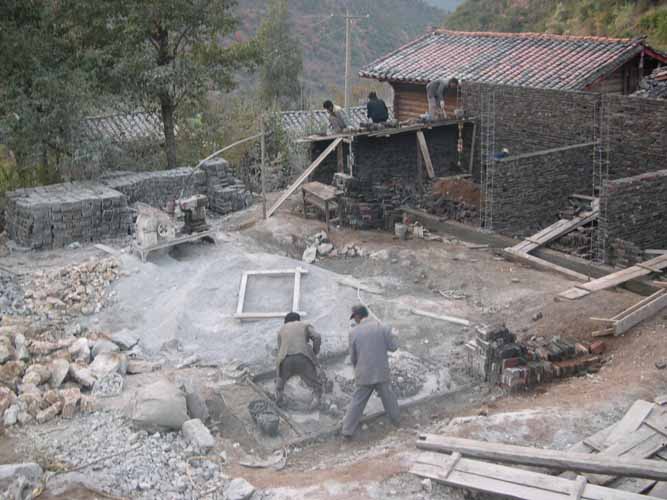 十、修建方式:此学校不发包材料,属于我们自己选订材料,运输至工地。施工队只收取人工费,当地村民出大批义务工,村里出木头、石头等当地能提供的材料。