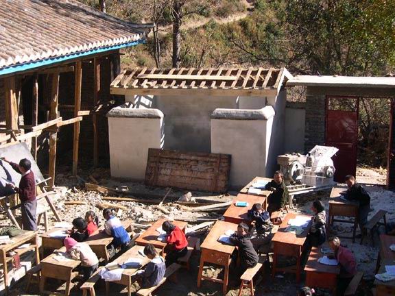 三、学校位置:位于丽江地区西北深山区,距离金沙江约15公里,距离泸沽湖约65公里,距离宁蒗县城约50公里,从宁蒗县城坐车要3-4个小时到翠玉乡(道路塌方时徒步要1天,其中有22公里的泥泞土路),从翠玉乡到学校有7公里不通车的山路,徒步约1.2个小时,建材运输均需马帮和人力驮运。