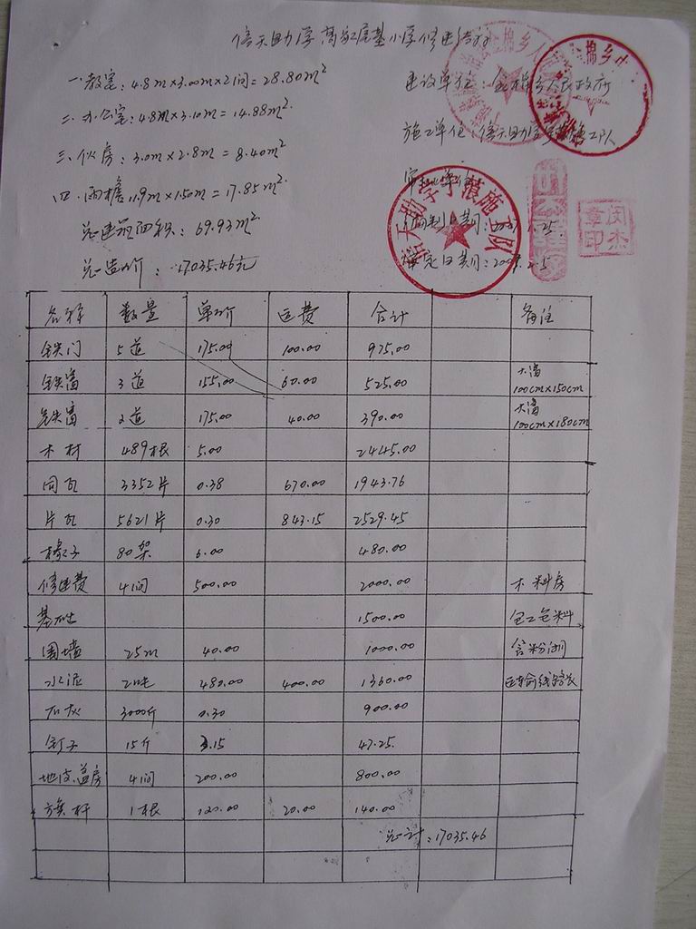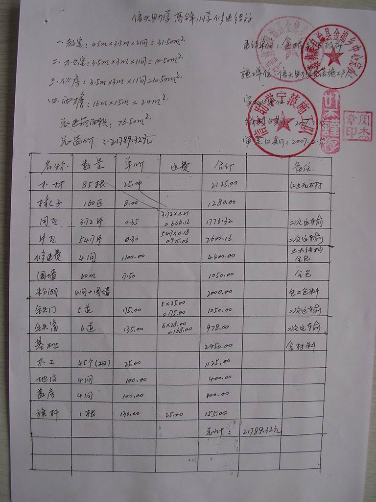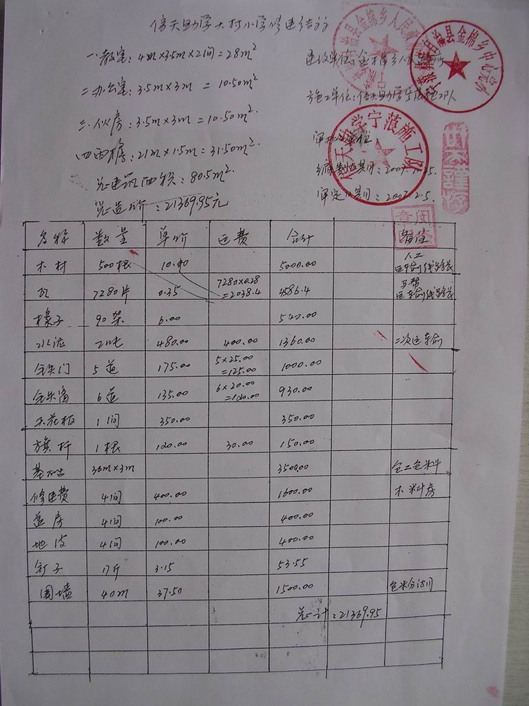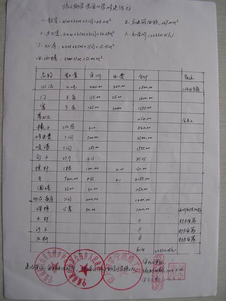 06年修建的马金子小学余款 2131元