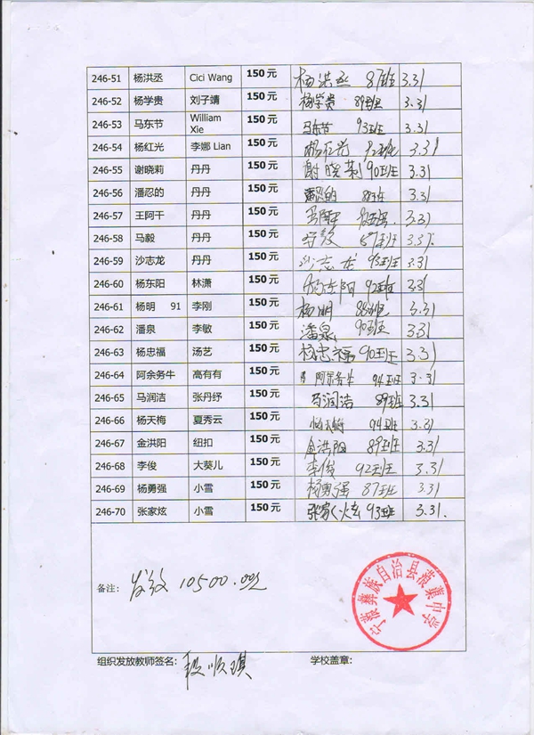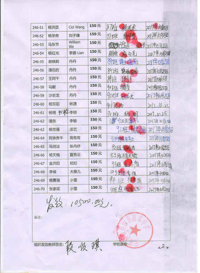 » 第246批受助学生名单( 蒗渠中学初一70名,萌萌团)
