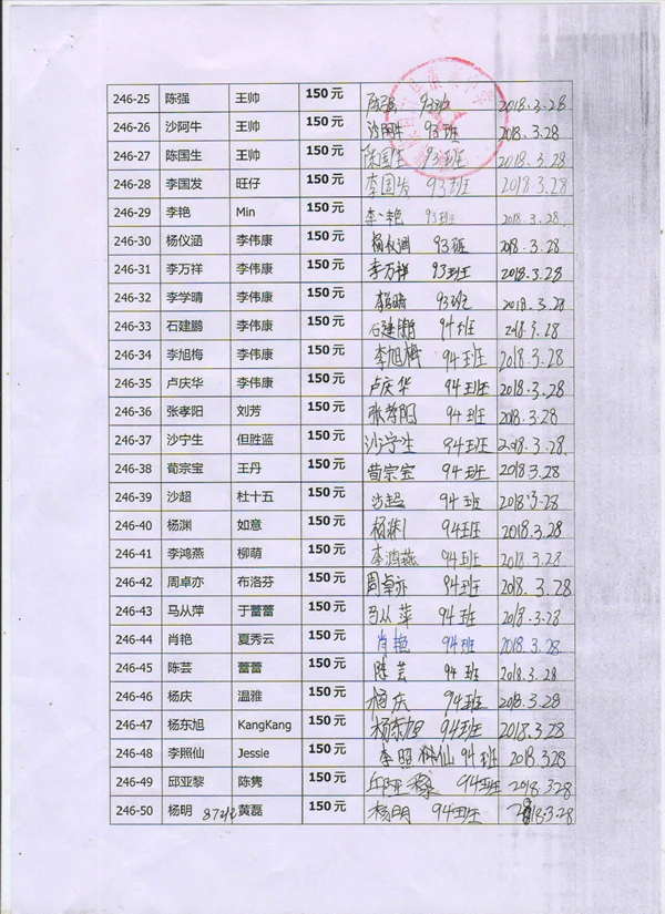 第246批蒗渠中学(2018年3月-2018年8月)受助学生签字确认单