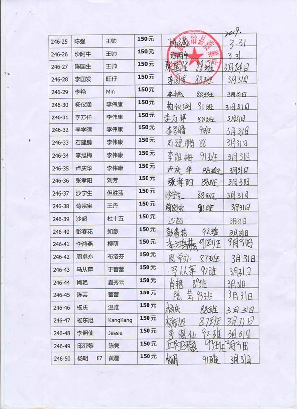 第246批蒗渠中学(2019年3月-2019年7月)受助学生签字确认单
