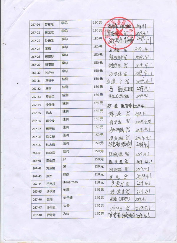 第267批蒗渠中学(2019年3月-2019年7月)受助学生签字确认单