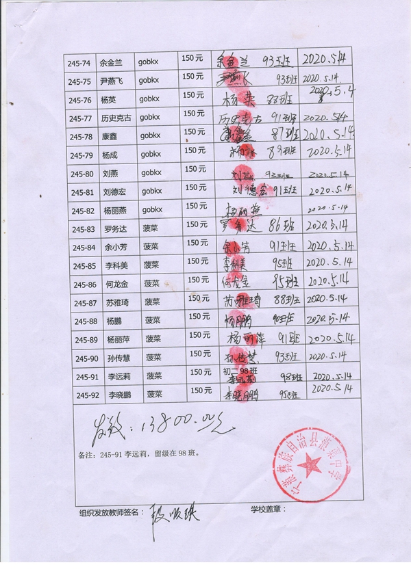 » 第245批受助学生名单( 蒗渠中学初一92名,团捐)