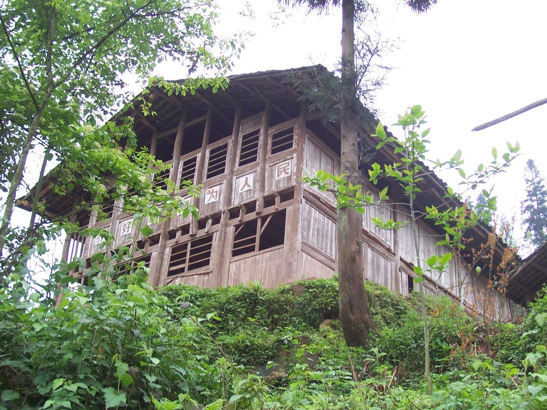 现状:两座木结构房子,一座是50年代建的,另一座是70年代建的,很多柱子根部已经腐朽,房子已经严重倾斜,已经是危房了,当地群众非常希望有人能够帮助他们重新建设这座学校……