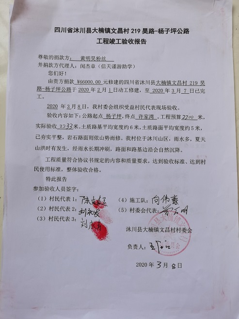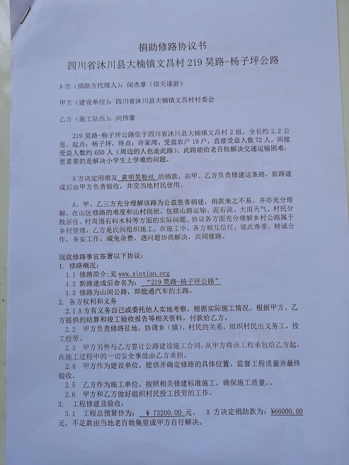 (1)爱心人捐款、村民投工投劳一起修土路,干季可以通车;