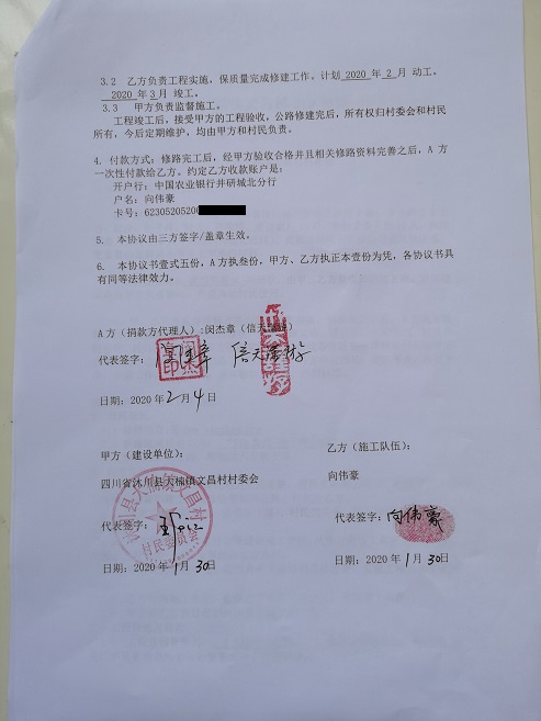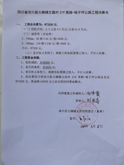 (5)修路预算分好几部分,有挖掘机、涵管、炸药爆破(山崖需要爆破)、堡坎、村民义务工、征地等。修路,我们不全包,我们出一大部分钱:挖掘费用、山崖爆破等。村民出义务工、涵管、征地费、村民小额集资。