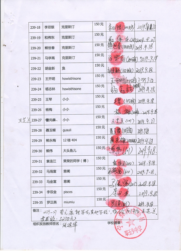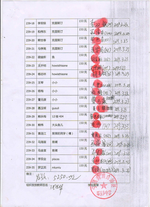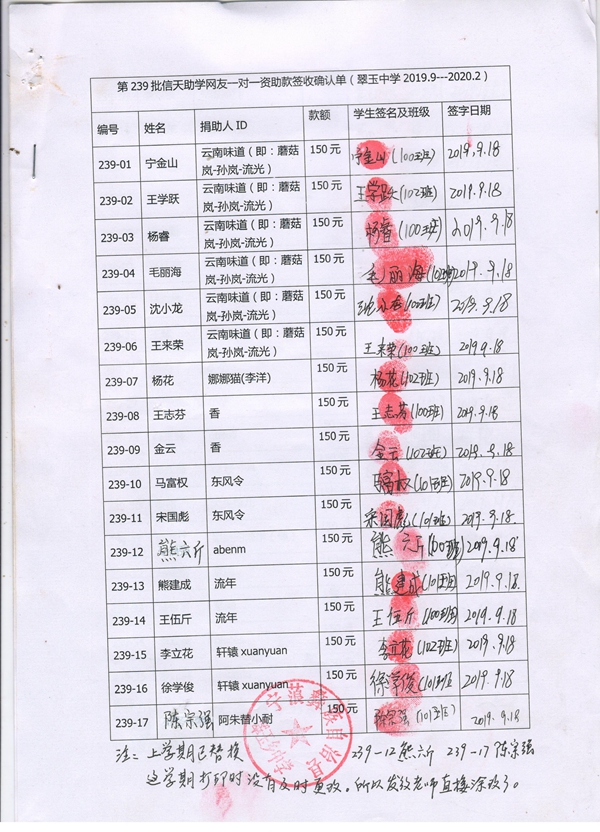 第239批翠玉中学(2019年3月-2019年8月)受助学生签字确认单