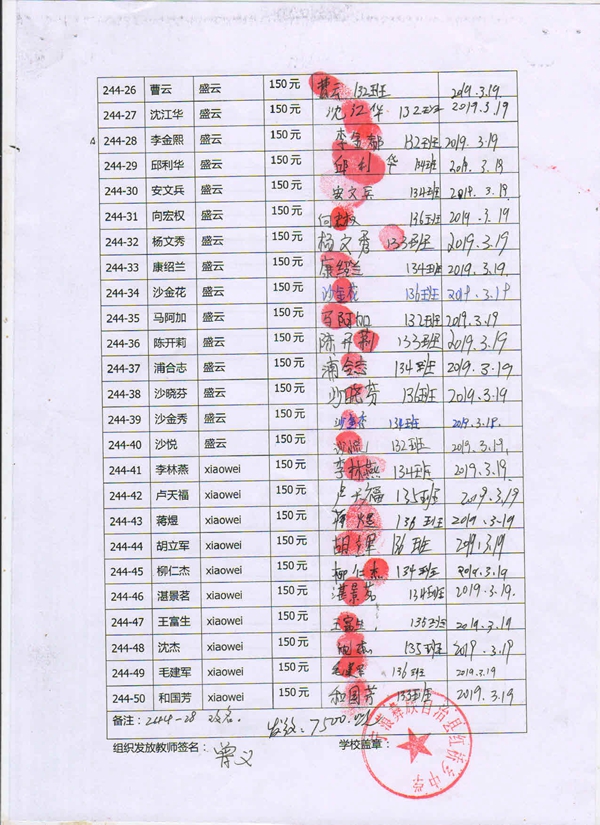第244批红桥中学(2020年2月-2020年8月)受助生签收单