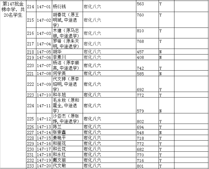 共有以下几批:第142批、143批、144批、145批、146批、147批、148批、149批、150批、151批、152批、153批、157批、158批、159批、160批共16批,初中毕业生一共646名。