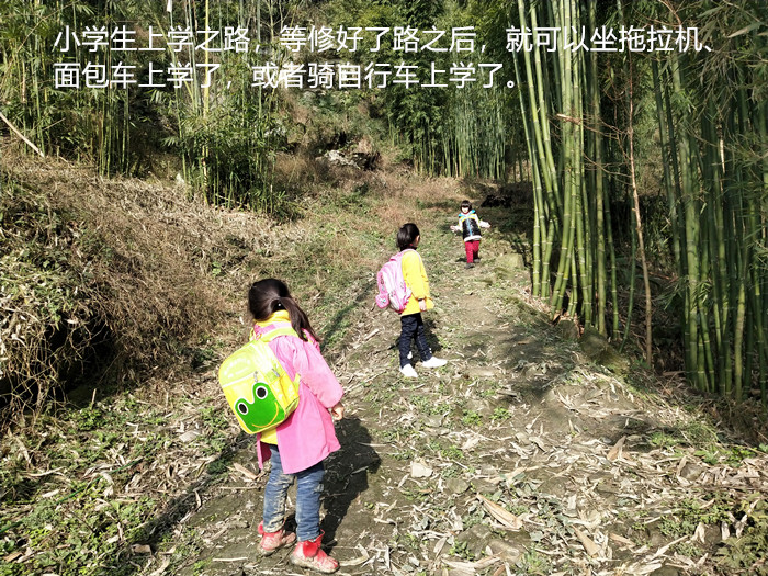 小学生上学之路,等修好了路之后,就可以坐拖拉机、面包车上学了,或者骑自行车上学了。