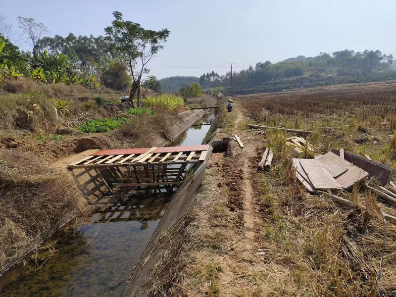 石井桥、上怀塘桥位于广西贵港市港南区木格镇周樟村樟村屯中的一条辅路河渠上,该屯以汉族为主,有农户218户,人口大约为900多口,经济收入主要来源是农作物收益。村民耕作生产需经此桥,现村民自己用(1)三根水泥杆架、(2)用一根水泥杆架在水渠上通行,雨季时节水流较大,严重影响了群众的正常生产生活,存在着很大的安全隐患,所有村民都急盼修建一座桥梁。