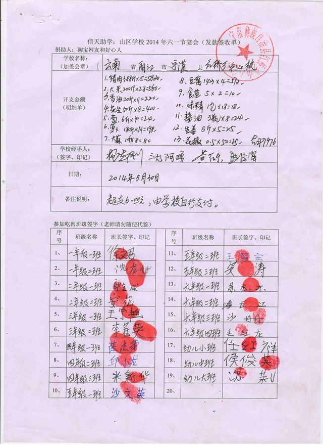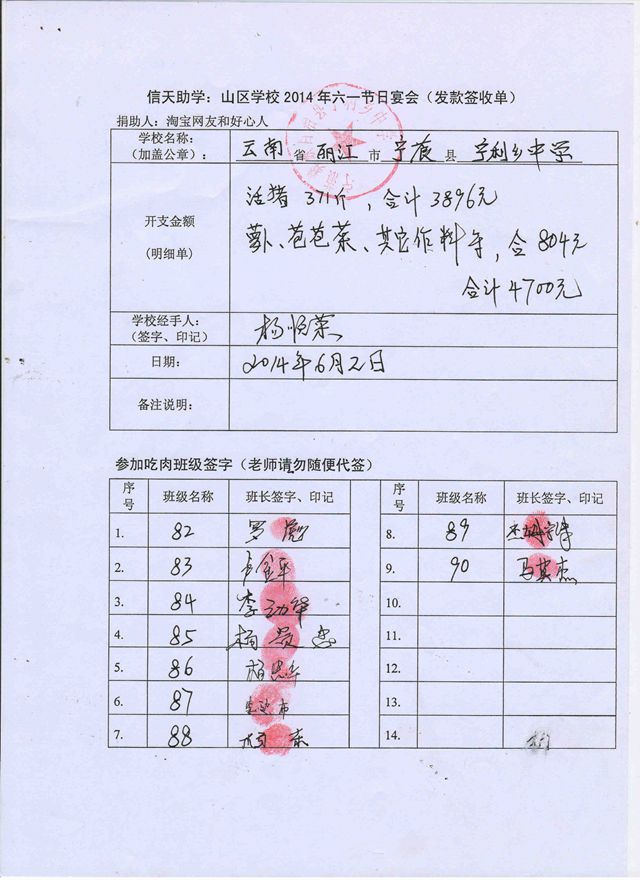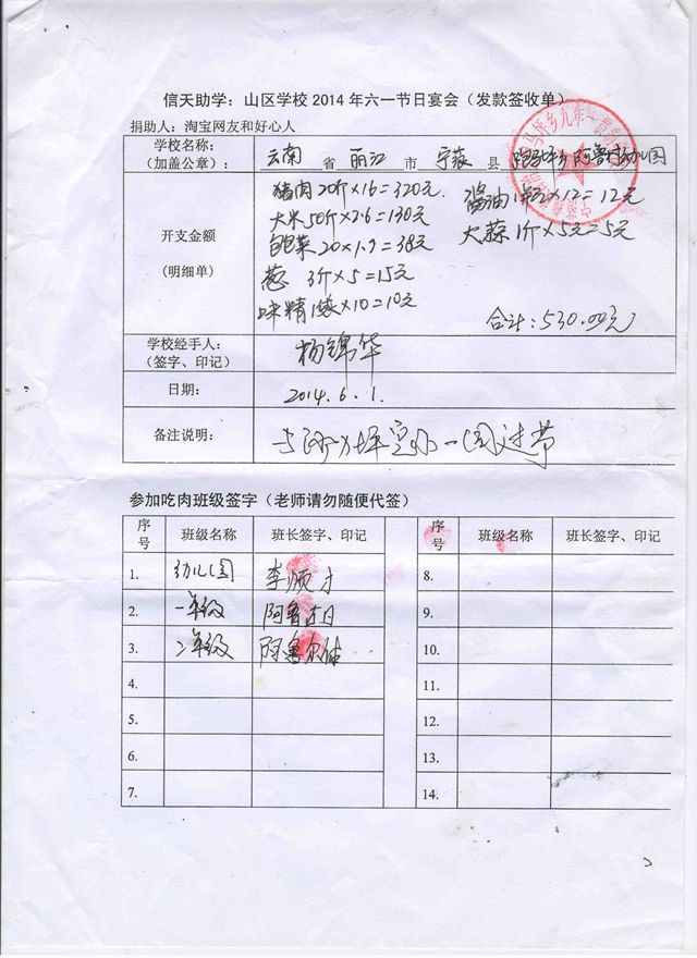 红旗中心校,红旗二小2014年六一节日宴发款签收单.jpg