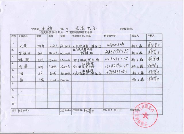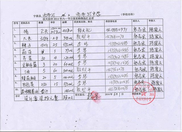 西布河中学,2014年六一节日宴会采购物品汇总表.jpg