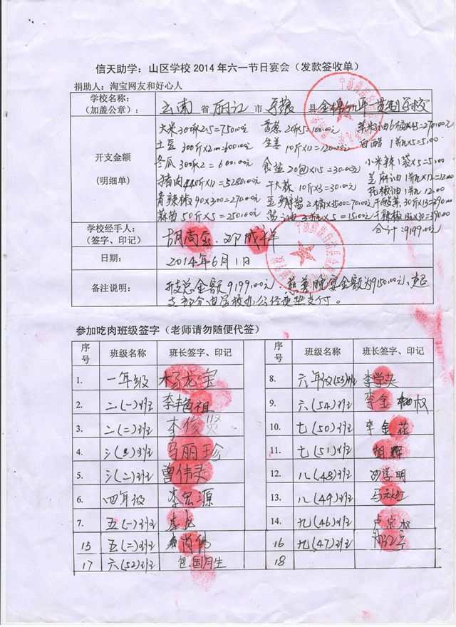 金棉一贯制学校,龙通完小2014年六一节日宴发款签收单.jpg
