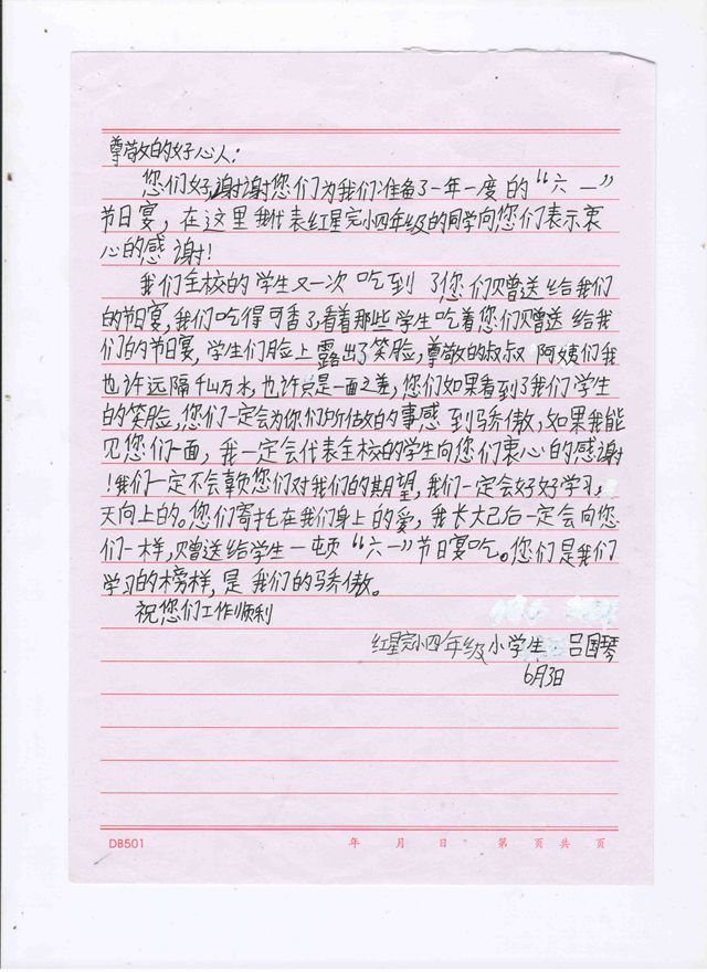 金棉一贯制学校,红星完小2014年节日宴学生感谢信1.jpg