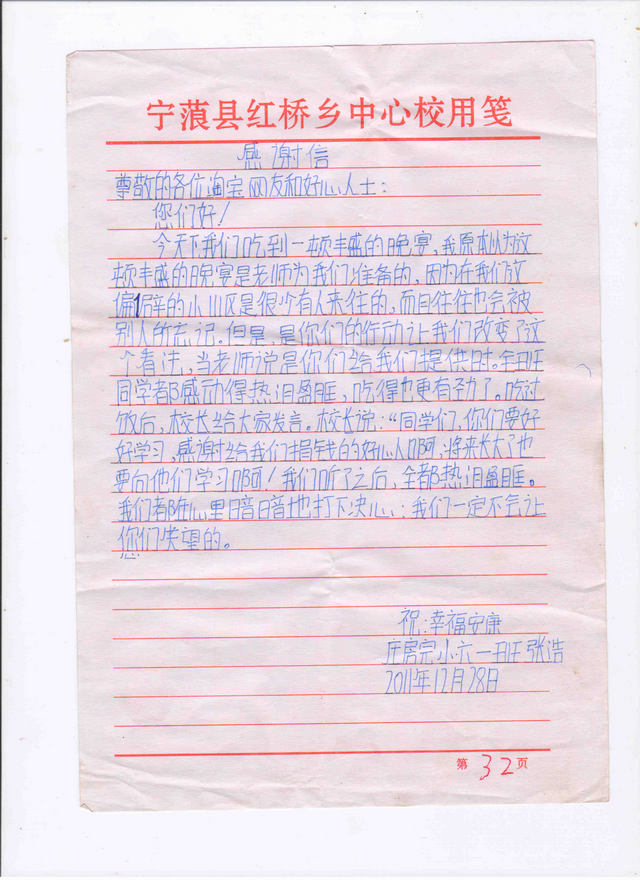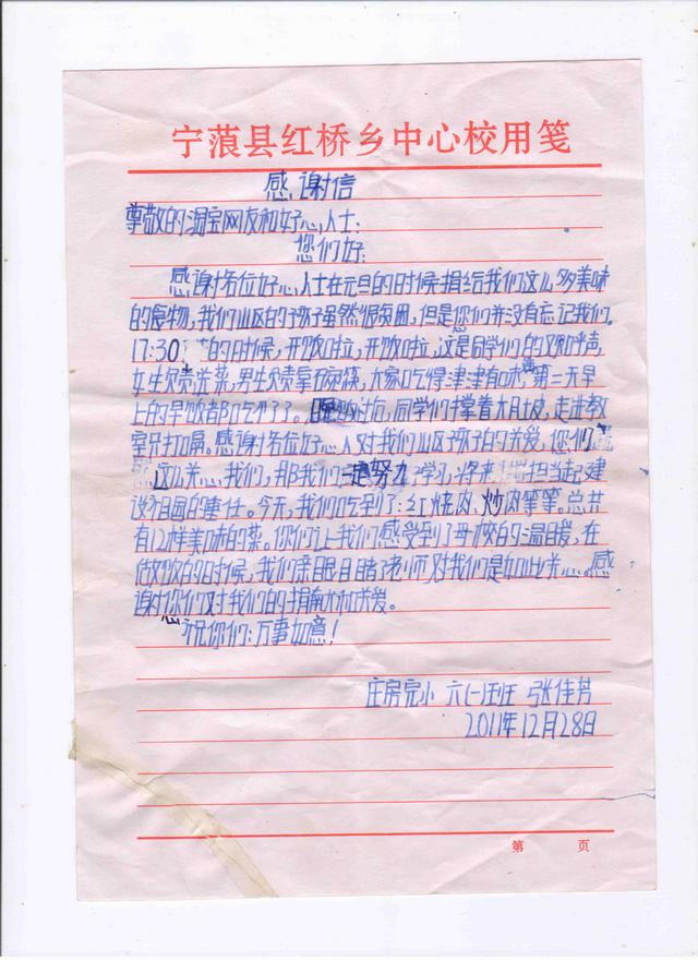红桥中心校,庄房完小2012年元旦慈善晚宴学生感谢信2.jpg
