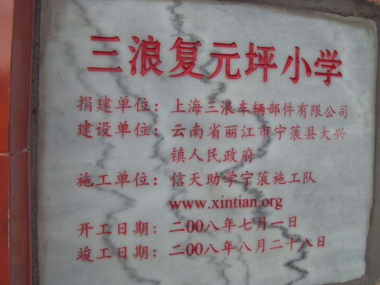 标题: 建校:云南省宁蒗县复元坪村小(2008年第3版080505)三浪捐助