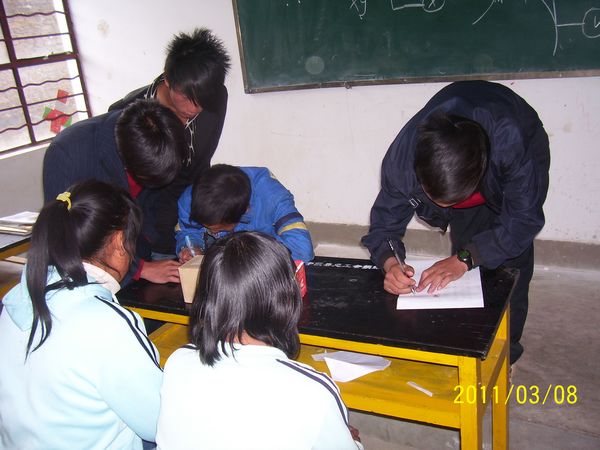 信天助学第92批烂泥箐中学学生领款签字(与第109、110批学生领款一起拍照)。