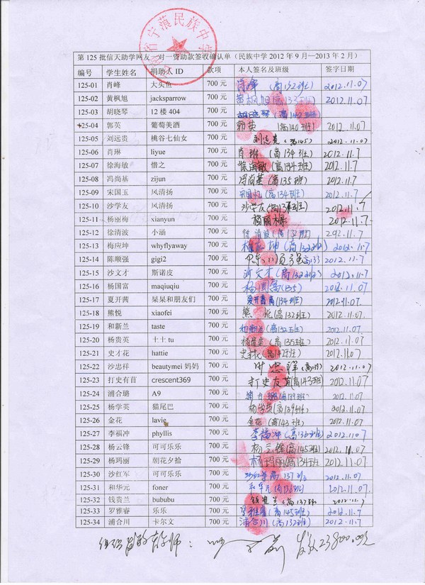 宁蒗民中125批(2012.3-2012.7)受助学生签字确认单
