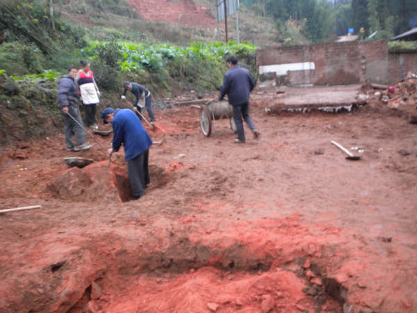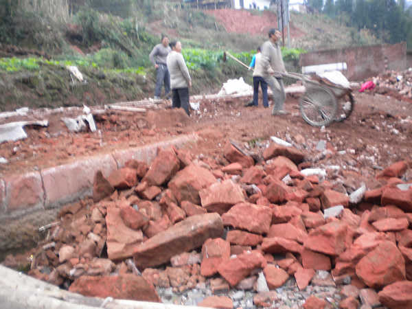 拄拐的是奈河桥小学负责人王会林,也是工程的现场监督