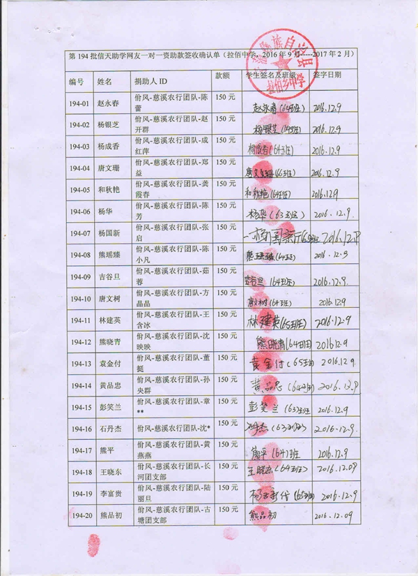 194-18彭富成,因中途辍学,资助款转给 王晓东;