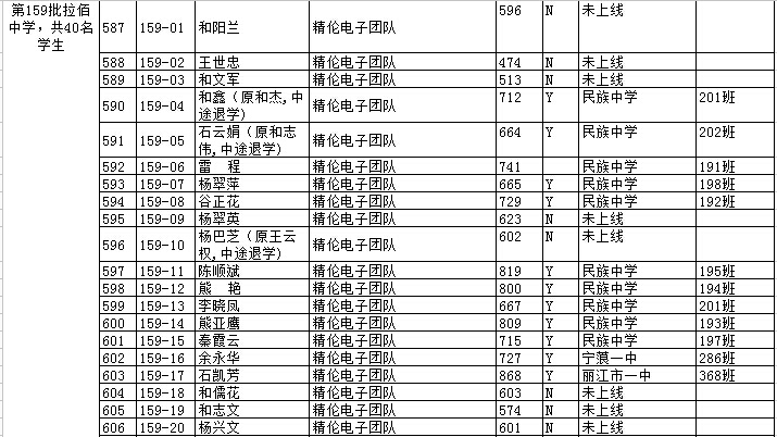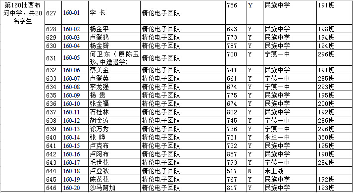 1、144-03沙学峰,中考成绩:726分;录取学校:宁蒗一中296班;