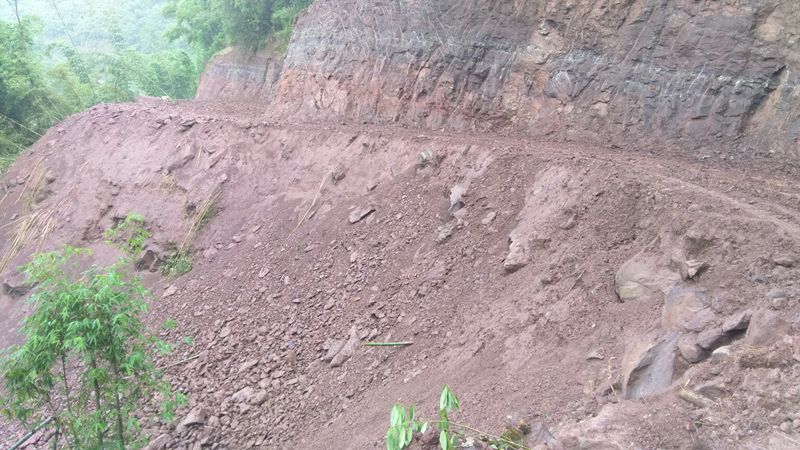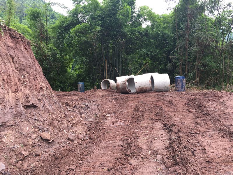 岩石计划炸药爆破,后改为挖机破碎。因为岩高钻炮眼危险,更主要是钻炮眼需要水,难度很大。