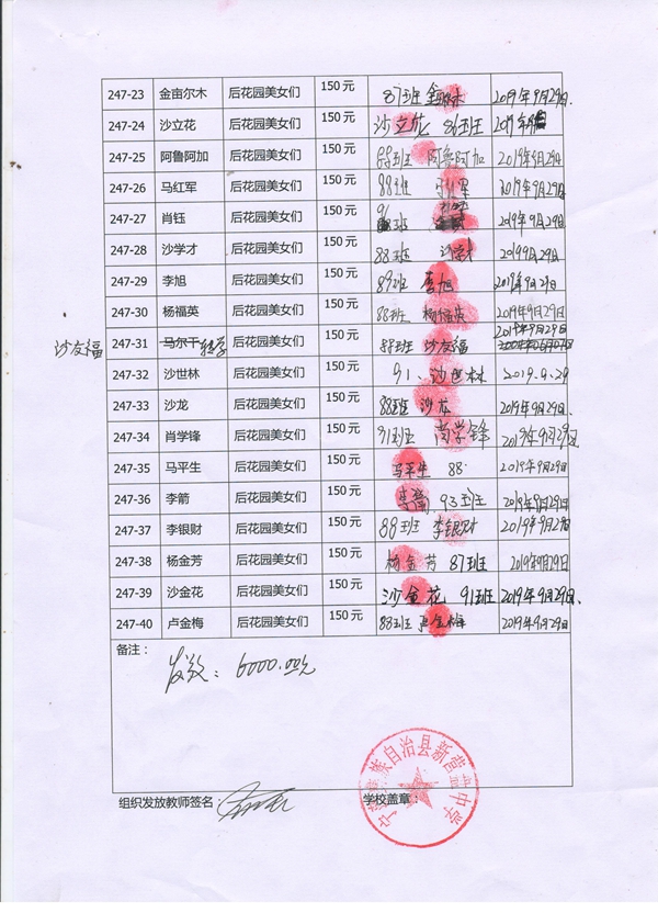 第247批新营盘中学(2019年3月到2019年8月)受助学生签收单