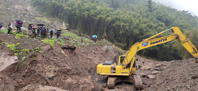 修建此路包含:清理一百多米的塌方、排放一个堰塞湖、新建两座小桥。