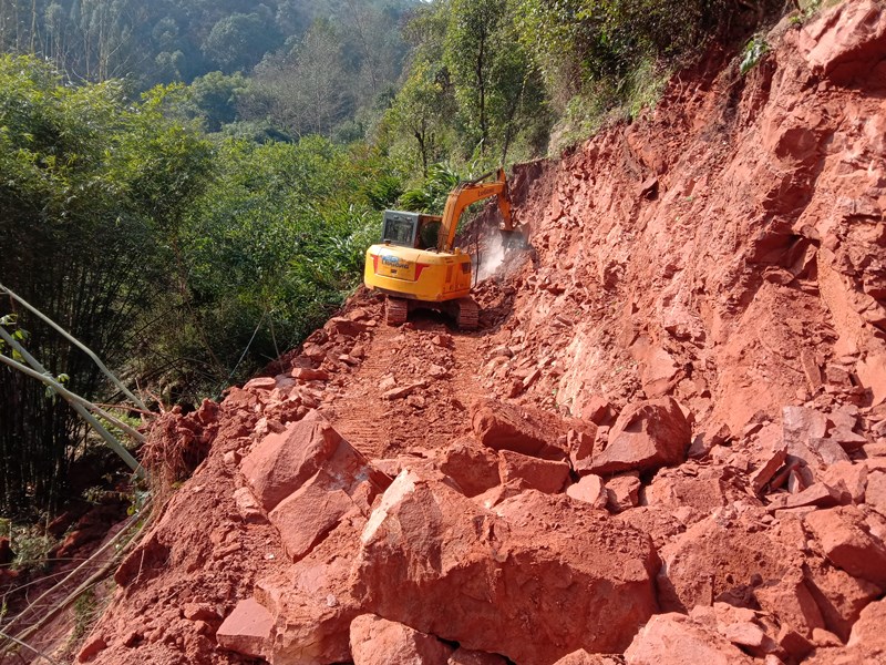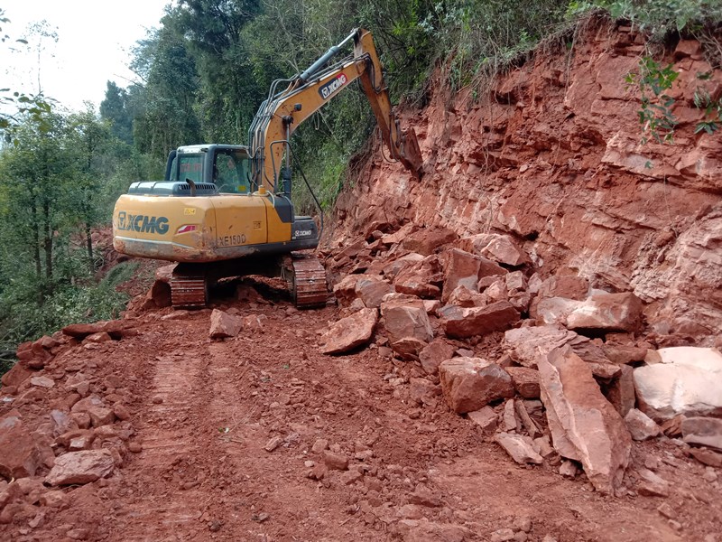 看着是红土,其实是坚硬的岩石,需要破碎。